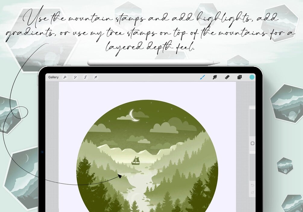 Mountain stamps for procreate help you create stunning nature scenes and landscapes with ease. With over 100 stamps to choose from, you can create a variety of different scenes. The included tutorial will walk you through the process step-by-step. Plus, the color palette lets you customize your stamp designs to match your own personal style.