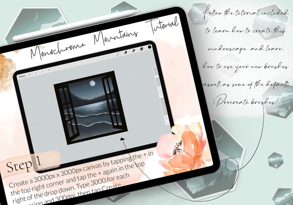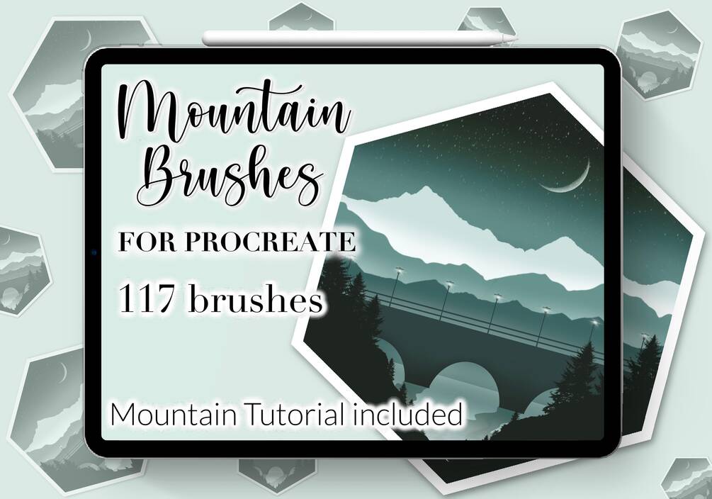 YOU WILL RECEIVE: ✅117 Mountain Procreate Stamp Brushes ✅1 Procreate Color Palette ✅1 Monochrome Mountain Written Procreate Tutorial