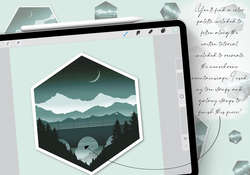 ✅1 Monochrome Mountain Written Procreate Tutorial