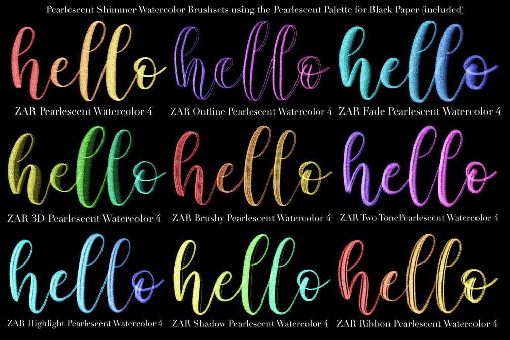 9 Pearlescent Shimmer Watercolor Brush Lettering Pressure Sensitive Procreate brushsets including: